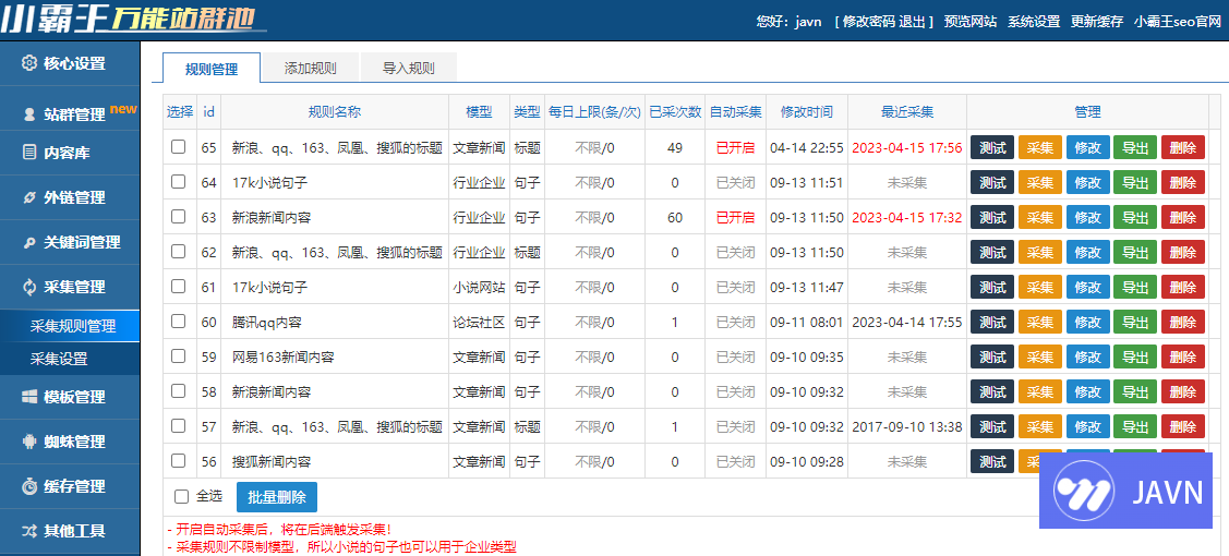 18、超好用后台管理:后台使用简单,轻松管理百万蜘蛛